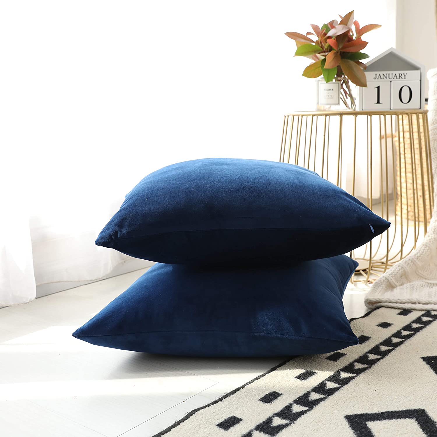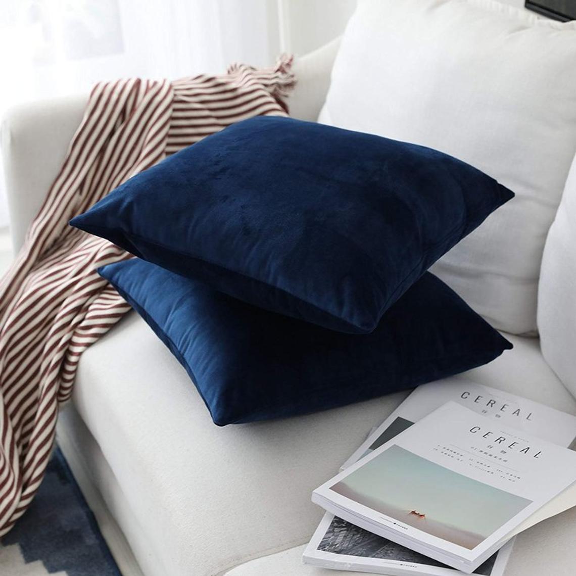 Lacivert 2li Set Birinci Kalite Döşemelik Kadife Kumaş Kırlent Kılıfı – Özel Ölçü Seçenekli